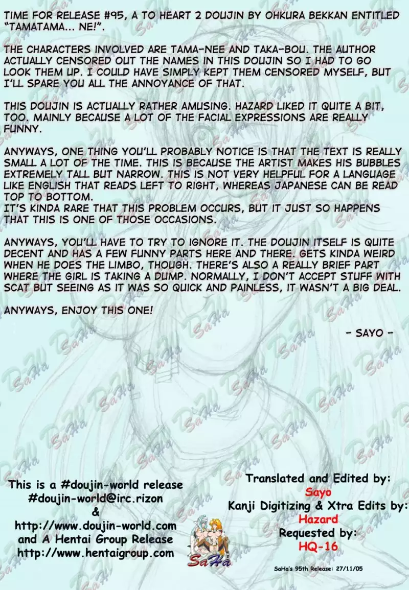 (C68) [Bousou!! Fuhatsu-dan (Takai Biki)] Matatama -Tamatama Part II- (ToHeart 2)