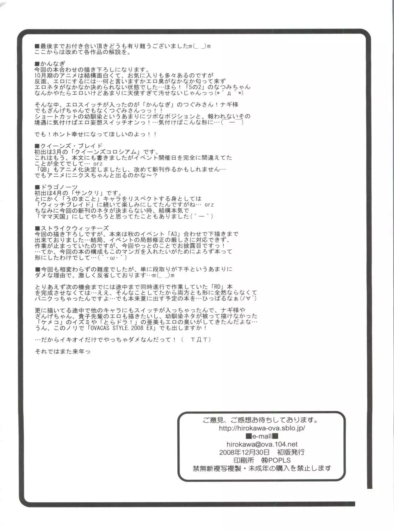 (C75) [Ovacas (Hirokawa Kouichirou)] Ovacas Style 2008 (Kannagi, Queen's Blade, Strike Witches)