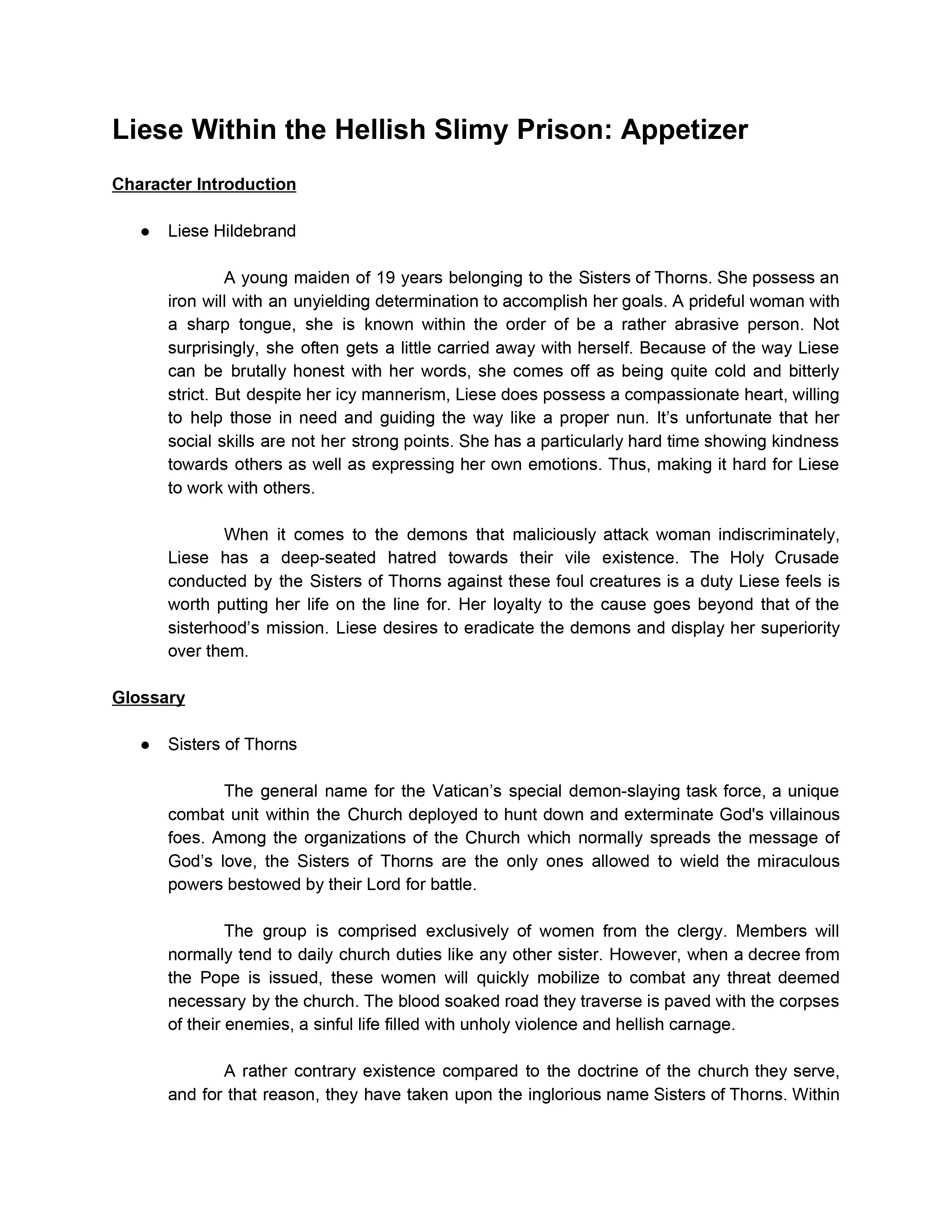 Liese Within the Hellish Slimy Prison: Appetizer