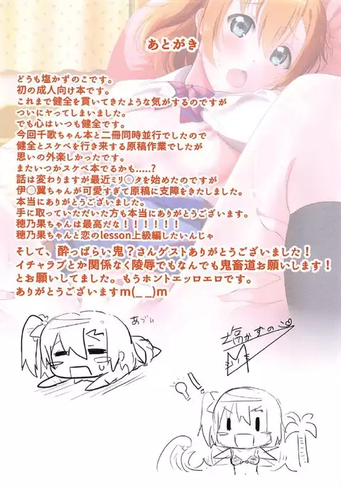(C92) [Naragyogyo Kumiai (Shio Kazunoko)] Honohono Tsuyudaku Natsuyasumi (Love Live!)