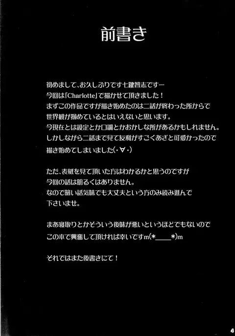 (C88) [Nanatsu no Kagiana (Nanakagi Satoshi)] Defective (Charlotte)